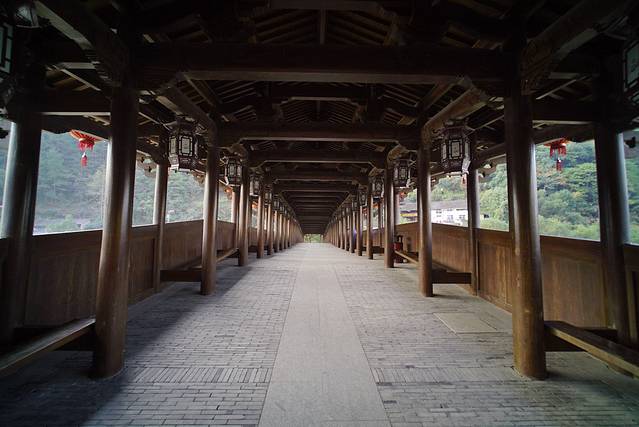 由于我们去的时间大概下午三点左右,当时的太阳就把桥身照到了一半,然后变成了阴阳桥,大概3点50左右,太阳就照不到桥身了。所以想去看这个廊桥,可以在下午一点半到两点半去看,这样太阳照到桥身会很好看。