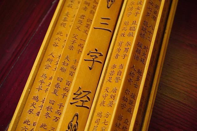 同学们坐下之后,桌子已经摆好了竹卷,上面是三字经的内容,然后学生跟着老师一起念三字经,念完三字经之后,来了一个小插曲,一个读书不用功的富家子弟跟老师之间产生各种搞笑奇葩的对话,也是对整个课堂带来了一些乐趣。