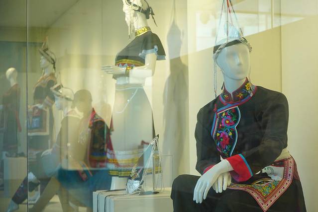 我们看完民族服装后,开始进入展厅,展厅有八个。展厅分为序厅,起源与迁徙,环境与聚居,生产与交换,饮食与服饰,社会与风俗,信仰与崇拜,文化与艺术八个单元。第一个展厅是介绍人口方面,主要介绍了他们从哪里来,是怎么发展过来的,他们的历史,人口的分布,以及他们民族的住宅,一些建筑,土楼,打猎买卖这样一种生活的活动。