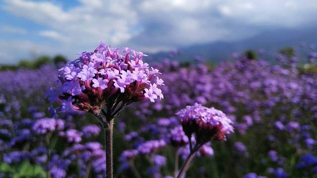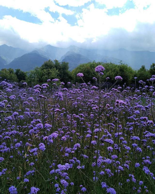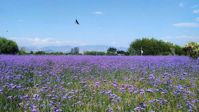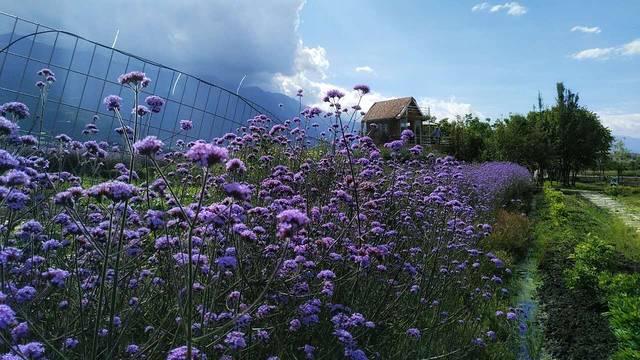 大理有花海好几处,离古城最近的是云上花海,从古城过去走路半小时就能到了,门票30元,这片花海是今年新开辟的,不比其他的花海小,花的种类也蛮多,最大片的是马鞭草,这种花单看不起眼,小小的一顶,但连成片却美的不像话,紫色的一大片,远远看去优雅极了,就是它了!