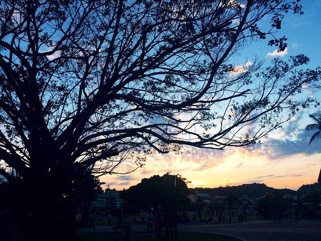 当时在栏杆上看到这么美的景象,感觉一整天看景点走路的疲劳都没有了。吹着海风,听着下面当地人唱歌,看着沙滩边还在拍照的游客,好是惬意。