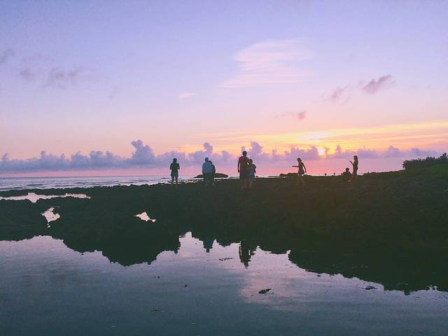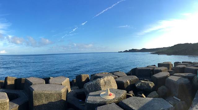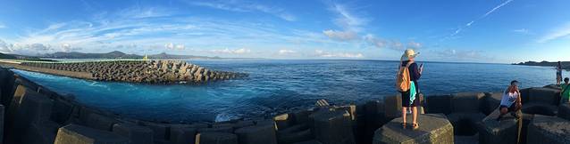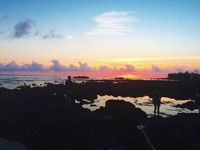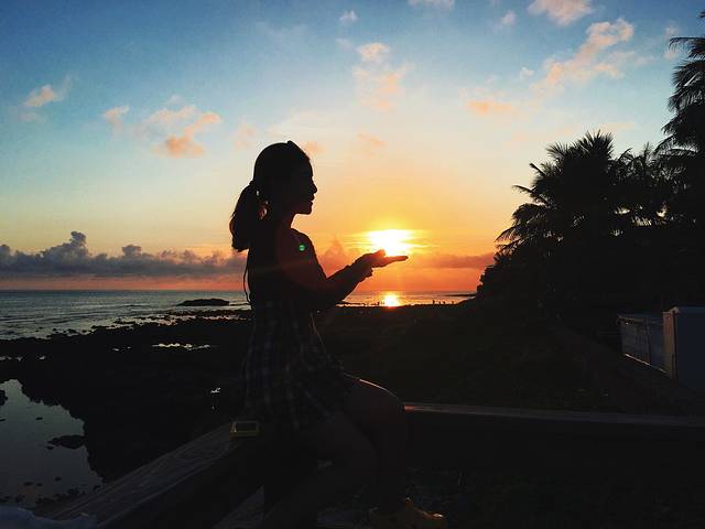 再上车已经快接近太阳下山了,阿辰打算带我们去一个很美的地方拍日落。时隔有一段时间了我已经忘了那个名字。那就是电影海角七号的取景地,当时他们一帮人喝醉酒的地方。阿辰说去的人很少,因为没有宣传,也是只有当地人才回去那里拍落日。