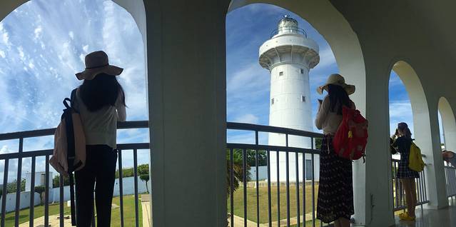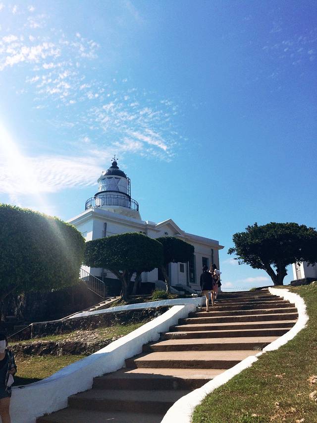 上岛后,因为灯塔离刚上岛的地方比较近,所以我们是第一个去的。车子上只能停在下面上不去的,要人自己爬上去。灯塔的旁边还有炮台,因为中午天气太过炎热,也不想就单单上去看个大炮,所以后来的炮台我们就没上去了。