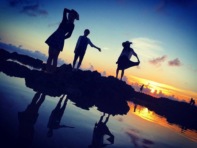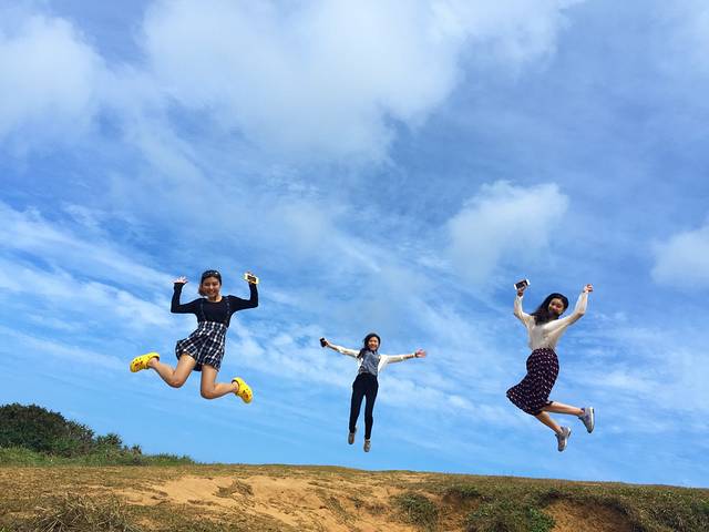 下面这张有意思了。我们到了鹅銮鼻公园,阿辰说要帮我们三个拍张特别的照片,说来个多人全景,我们就按照网上的教程试了很多遍,出来了这张照片,还是挺有意义的。