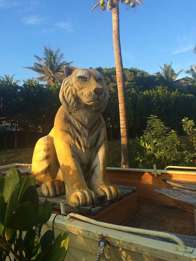 在去的路上,我们经过了白沙湾,《少年派的奇幻漂流》取景地,后来还专门修了个老虎放在那里。因为之前放在沙滩太多人拍了,就重新挪到了门口一个很隐秘的角落。当时我的两个朋友都已经太累了,所以我下车拍了个照就上车继续前往拍日落的地方,千万要赶在日落前到那里。