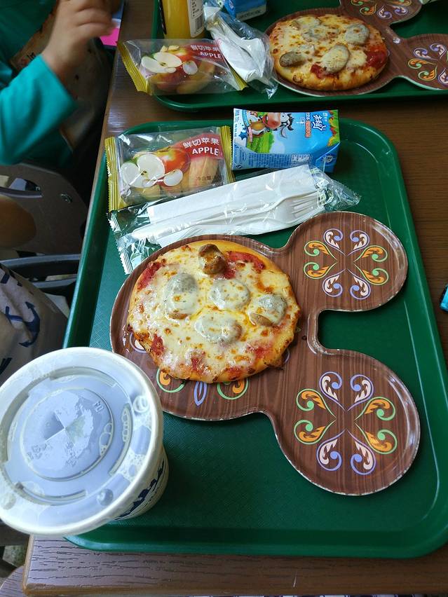 中午出来,几个妈妈和宝宝都很累了,直接找地方吃中饭,就在小飞侠边上的餐厅吃的,导游的卡可以吃饭打8折哦!说老实话,看千层面第一眼,我就觉得一点都不迪士尼,没啥感觉,但是试吃了一下其他套餐后,我发现分配给我的千层面居然是套餐里面最好吃的,真是意外的惊喜。说道这里必须提一下david的撩妹小插曲,大人们点的大多是75的套餐,其实85的套餐是可以送冰淇淋劵的,但是我们不知道,等买完单才知道的,结果我们吃得差不多的时候,david自己拿着一张冰淇淋劵回来了,说是给妈妈吃(妈妈不让david吃冰淇淋的)我们都很惊讶,结果david说是后面坐的一个小美女送给他的,我们以为是david不小心拿了人家的,跑过去还,人家妈妈说是她女儿非常喜欢david所以送给他的,希望和他成为好朋友!撩妹技能太逆天,作为一个女孩子的妈妈内心不可描述,此处省略一万字!
