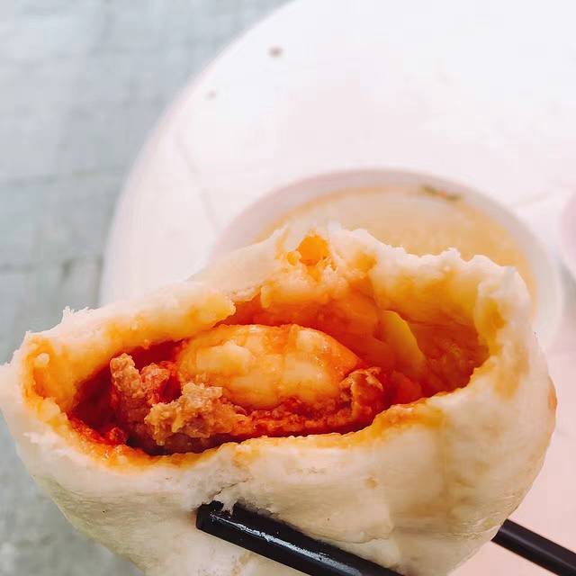 误打误撞走进的一家早餐店,我俩第一天下了火车实在是太饿了。在离中山路很近的一条小路上,看到很多人都在一家小笼包店门口排队。本着有队必排的信念,我俩也挤了进去。牛牛看到大虾包子就说,该不会是38一个吧。哈哈哈哈,结果人家说9元一个,一整只大虾在里面的包子,强烈推荐给你们!