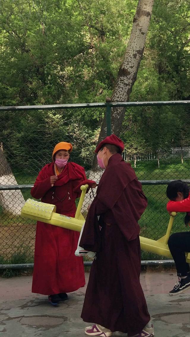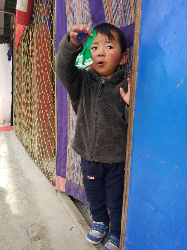 在转色拉寺的白塔,被奶油泼了一身。然后等辩经开始前,靠着墙壁睡了一觉。