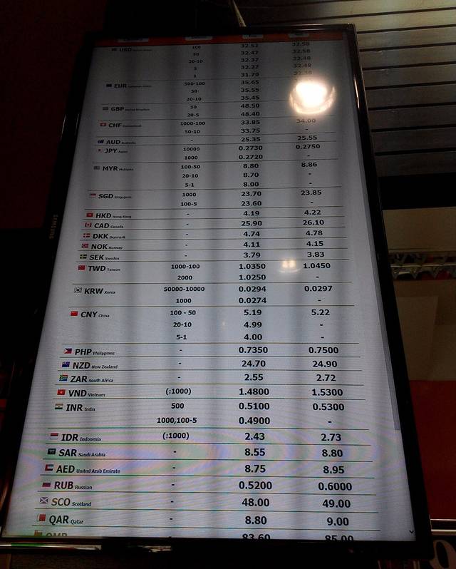 曼谷有个著名的“地下钱庄”——SUPERRICH,BigC旁,汇率很高,软妹币有时达到1:5.2,美金1:32.53,但是这里有两家SUPERICH,汇率稍有不同,其实只要多跑几步来回比较下就能省点钱呢。