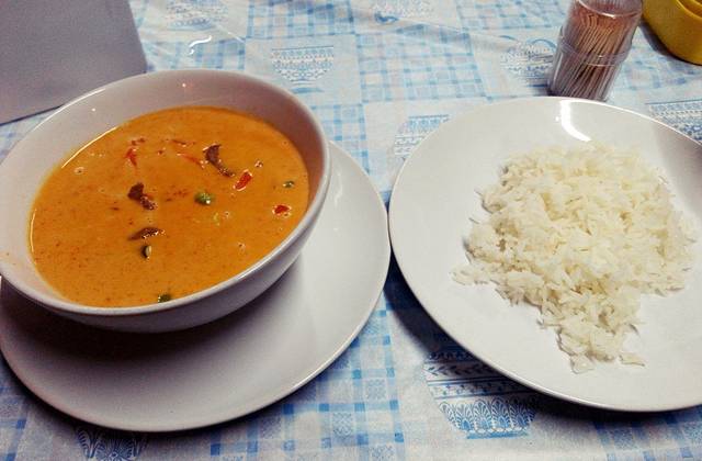 7.提到泰国很多人会想到泰式咖喱,分别尝试过黄红绿咖喱,发现此行最好吃的咖喱,还属兰塔岛的街边摊,Masaman Curry,泰式咖喱浓郁入味,不会太辛,不要看外形普通,咖喱汁的味道熬制的非常棒!其次泰国的米是真心不错,饿到菜还没上就直接吃了一盘白饭。就这一顿让我对Masaman Curry彻底种草,以至于跑到清迈,买了两包Masaman的调料回家。