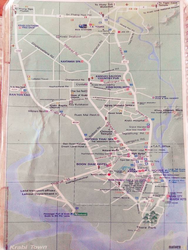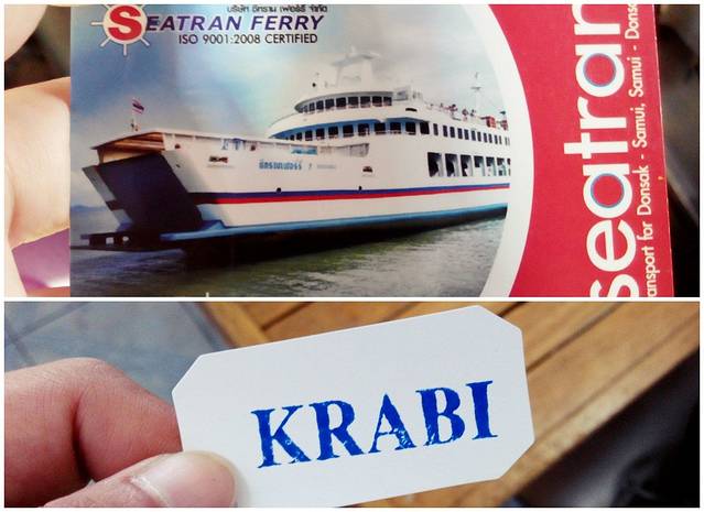 在苏梅岛上的青旅里订的车船联运票,500铢,青旅早上8点半pick up后到纳通码头坐2个小时船到素叻他尼,再坐辆双条到兼具转运站和餐厅的小店面,之后坐辆大巴到甲米的bus terminal。因为巴士站距夜市有六公里路,所以又花了50铢坐辆突突到甲米镇中心,反正这一天就是从苏梅到甲米的各种转场,等住的安定下来就直接去觅食了……