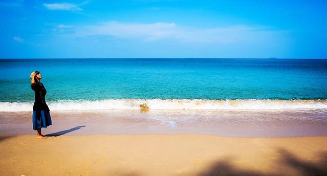 偶然看到空旷的沙滩上,一对上了年纪的老外夫妻铺上浴巾,躺在树荫下,伴着海浪声看书,就是如此安静的一个定格,我怔怔看了好久。与子偕老的感觉或许就是这样,彼此不打扰,但一个默契的眼神,两个人便同时放下书携手去海中游泳,戏水回来后你帮我擦背我帮你挪毯子,仿佛整片海滩就是他们的家园,这种幸福感爆棚的画面也只能在兰塔岛这样只两三人的海滩上才能看到。