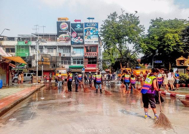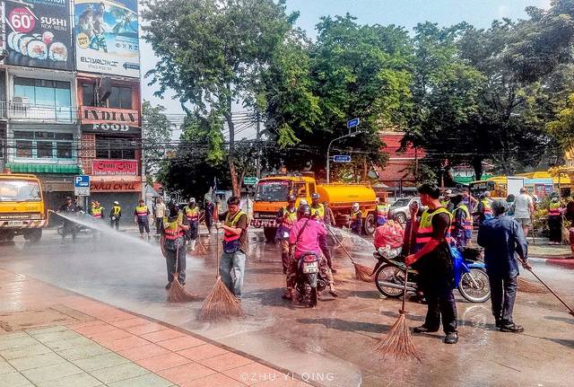 泼水节结束后的一大清早,当别人在狂欢中酣睡过去,保洁人员倾巢而出,开始清扫狂欢之后的狼藉,为他们的勤勤恳恳点个赞!我表示泰国在节后处理方面还是非常及时响应的。