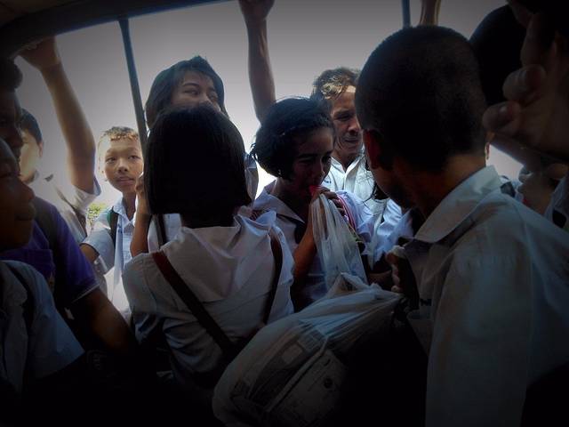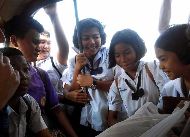 甲米坐的双条是我坐过最挤的,一群小学生放学后蜂拥而上本已坐满了的双条车,狭窄的车厢里塞满了20多个大人小孩,有趣的是,我和一老外还饶有兴致弯着腰窝在里面数人头,车里挤不下了,就跟阿三火车一样来个华丽丽的外挂hard模式……