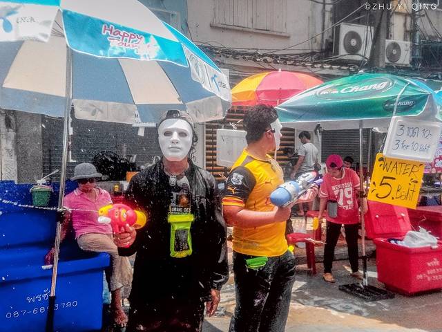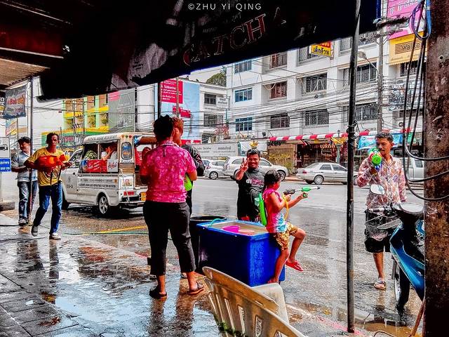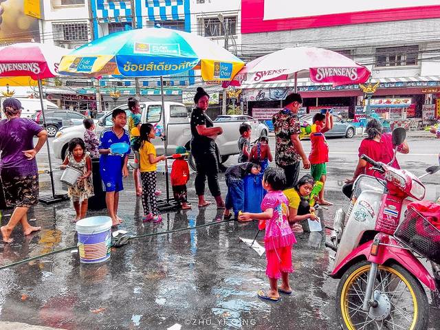 泰国新年,路上不管是认识还是不认识的,都会说声Happy New Year。什么都不用想,拿起锅碗瓢盆水管水枪,只管放肆泼水、大声欢笑,这才是节日的气氛。