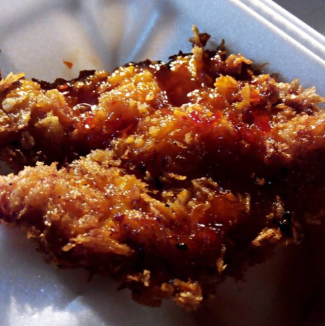 5.兰塔岛Sala Dan镇的夜市,泰式Pad Thai和烤玉米,非常好吃,Pad Thai才是泰国正宗的炒面,类似越南的炒河粉。东南亚人对于炸物都秉承着炸到焦的精神,大概这样才香吧……