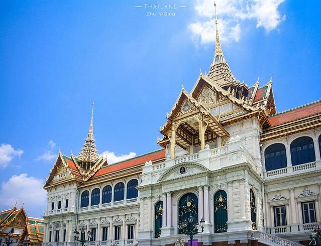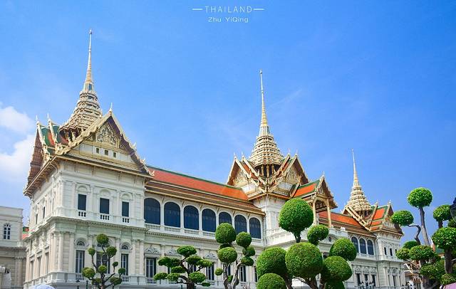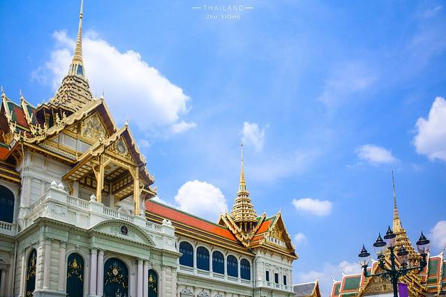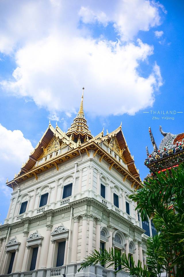 半知半解下,我开始欣赏起了大皇宫的建筑,这是一处规模宏大的古建筑群,具有鲜明的暹罗建筑艺术特点,里面汇集了泰国建筑、绘画、雕刻和装潢艺术的精粹,简直精美卓伦。宏伟的建筑,直冲云霄,在蓝天白云的衬托下,如同置身在画中一样。