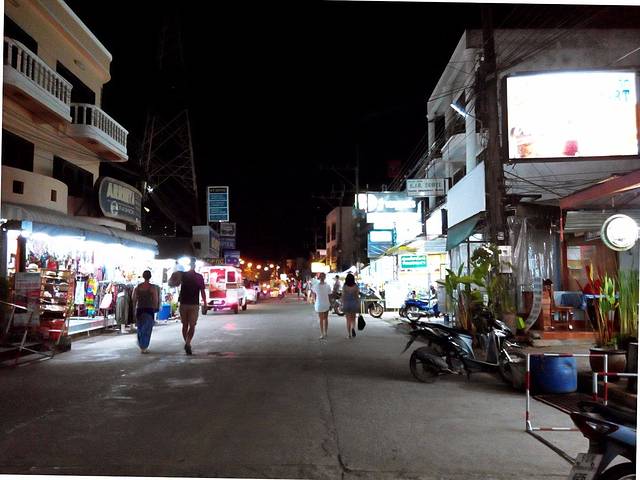 Saladan Town一到晚上就非常热闹,Walking Street上的夜市摊一个接一个,河粉炸鸡烤玉米春卷,人生有些时候就是对所谓的垃圾食品抵抗不住。除了吃的,这里还聚集了各种跳岛游的Agency,卖手工艺、卖装备的小店,酒吧咖啡馆,小小的步行街上应有尽有。一个人的旅行时间多到在各种Agency看价,在手工艺店逛上三圈,直到逛到晚上八点多才依依不舍原路走四公里回青旅。之后岛上的每一个夜晚,我都准时到小镇报道。