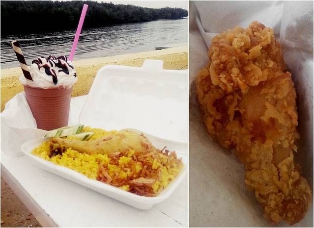 离开甲米夜市的那天,对自己终于好一点,咖喱饭加了两个鸡腿,难得点了杯可可奶昔,还能享受河景观景位,一共80铢。