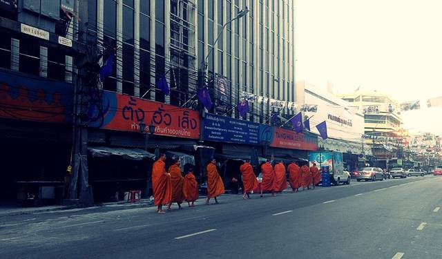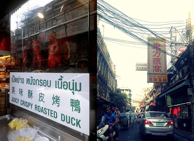 宋干节的最后一天,曼谷很多景点也跟着一起放假,在一片“国泰祥和”的泼水大赛上,我决定还是先撤出考山路的战场,跑到华南蓬火车站买了隔天晚上从曼谷到大城的火车,便一路步行到曼谷另一个最繁华的商区,也是和我大天朝有着悠远关系的唐人街。