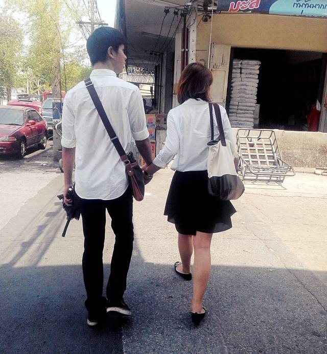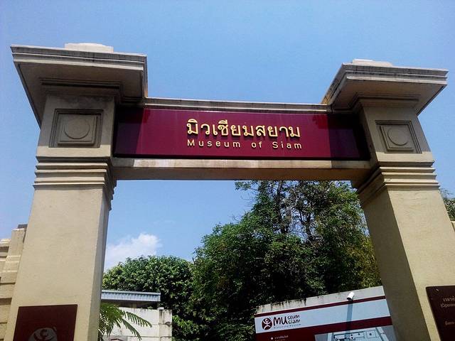 离开大皇宫,跑到卧佛寺,看到又是不少在拜拜的人,作罢。想要顺路去暹罗博物馆,发现得到下午四点后才能免费参观,这距离我晚上八点多的火车还是显得紧张了点,只能在门口晃一圈。倒是对面就是一座曼谷的高中,正好抓到甜蜜的男同学和女同学,这才发觉泰国高中生的长相也比天朝的要成熟很多。