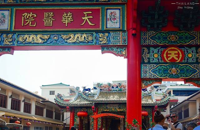 唐人街入口的标志,天华医院,还延续着中国古代从右到左的书写习惯,看得老外直拿相机记录,老外们跑到泰国都对中华文化的博大精深感到好奇。