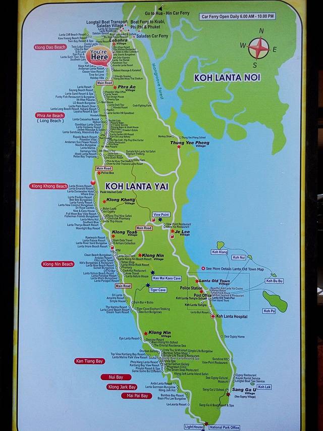 兰塔岛西边沿海一带有七八个沙滩,住宿从低价位到高档次满足各种人群需求。靠近码头的Sala Dan镇是个夜市聚集地,也有非常多的青旅。