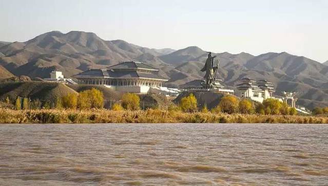 前方到站大禹文化园,工程建筑风格为仿汉代建筑,讲解员介绍大禹雕塑高36米,是这里的代表建筑,相传大禹治水来过青铜峡,为了歌颂大禹的功德,纪念大禹治水精神,因此修建大禹文化园。