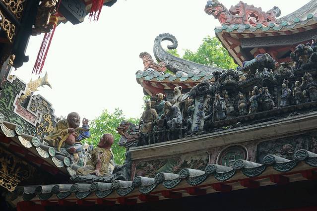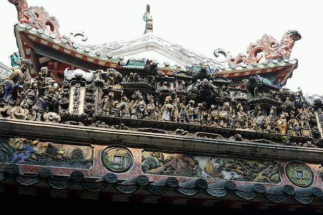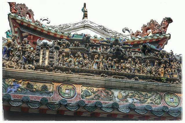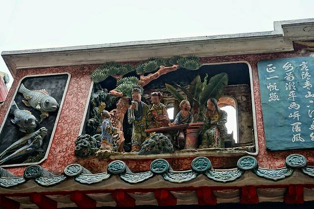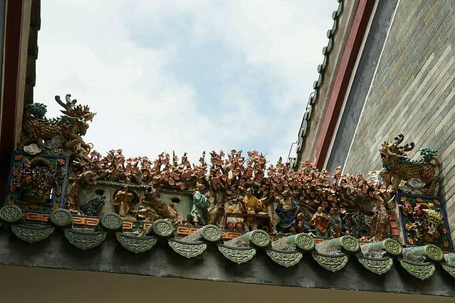 佛山祖庙正殿瓦脊,由“文如壁”店在清光绪元年(1875)制作,高1.6米,长31.6米,两边各有人物,动物155个。是石湾瓦脊艺术的代表作。