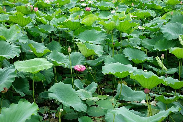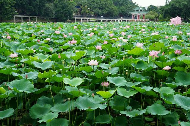 石湾有莲池,莲叶何田田。端午来时刚好莲花初放。