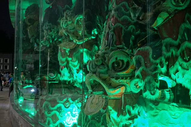 有一长組退役醒狮的屏风,灯光下比较慎人。