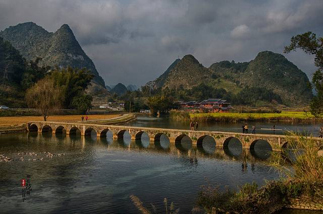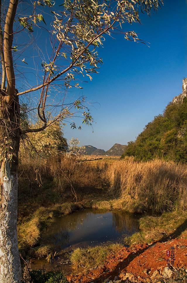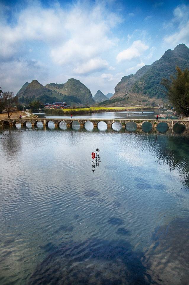 泉水来自对面的山水,流入地下河道再从泉眼冒出,泉眼形成的深潭足有四五十米深。现在泉眼被围起建成景区。30元门票外加停车费。看着景区崭新的仿古建筑和那小片油菜花田,显然不是我们的菜。何况我们此行专程去罗平拍油菜花。所以没买票进入。只在鹅泉桥和村里走走。