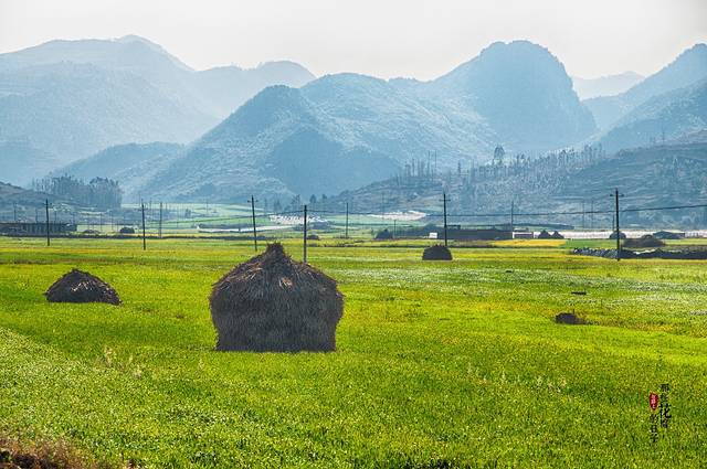 年前收割过的稻田,如今已经长出了嫩绿的青草。
