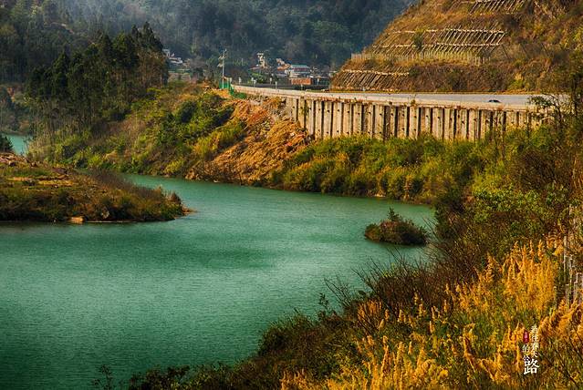 车子经过雷平镇通过雷平桥跨过黑水河的时候,把我们当场惊艳了。桥上很窄,两辆车同时通过的时候都要小心翼翼地开。为了不影响交通,我开了近一公里才找到较宽的路口,把车停好,赶紧跑回桥上去拍两边的风景。