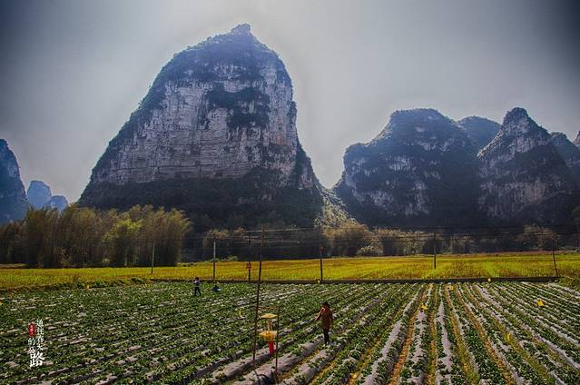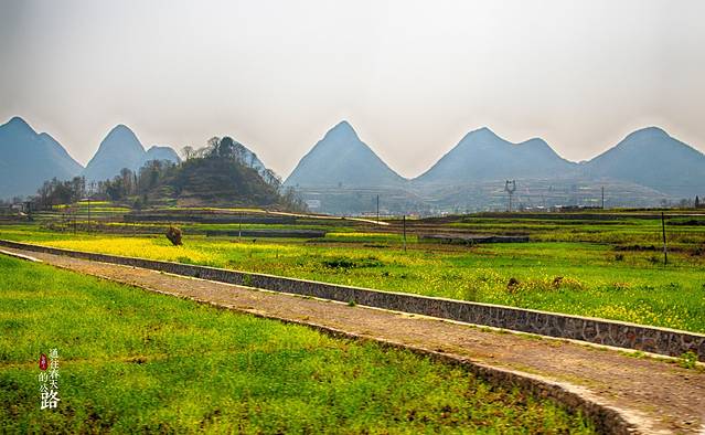 罗平县城沿江召公路行驶十来公里,有一处数不胜数的锥状小山丛,错落有致地排列在坝子之上,这就是闻名下遐迩、摄影家趋之若鹜的金鸡峰丛。