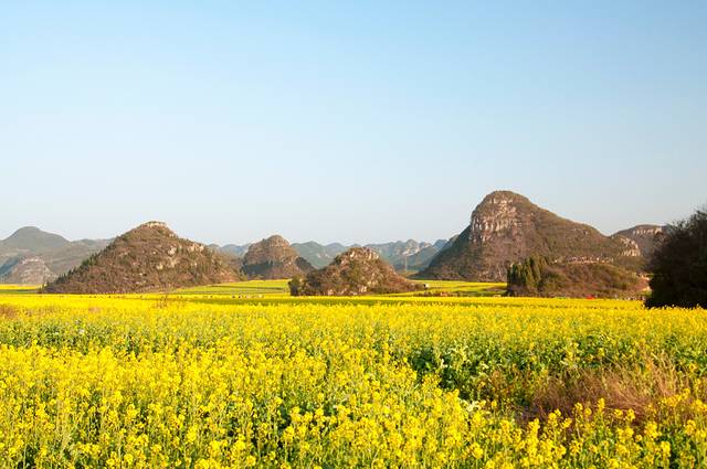 罗平是我国主要的油菜花籽生产基地之一,和我去年夏天去的青海门源、刚察相比,这里最大的特点就是油菜花开得特别早,每年初春,北方还处于大雪纷飞、冰冻千里的时候,罗平的油菜花已经率先开放,开得漫山遍野,放得遍布全城。到了罗平,你会不禁认为这才叫花园城市,整个小城就是沉浸在一望无际的油菜花海之中。