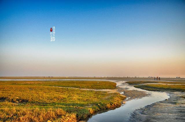 我们把车停在远离人潮的一端沙滩边,靠陆岸的一侧由于有淡水流入,竟长成了大片草地,一眼望去,竟有种误入大草原的感觉。