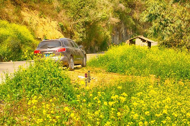 车子沿着烂路走,竟然发现路旁有片很大的油菜花田。连绵直至远方的山脚下,一眼望去,心旷神怡。开了大半天车,紧绷的神经正好可以放松放松。