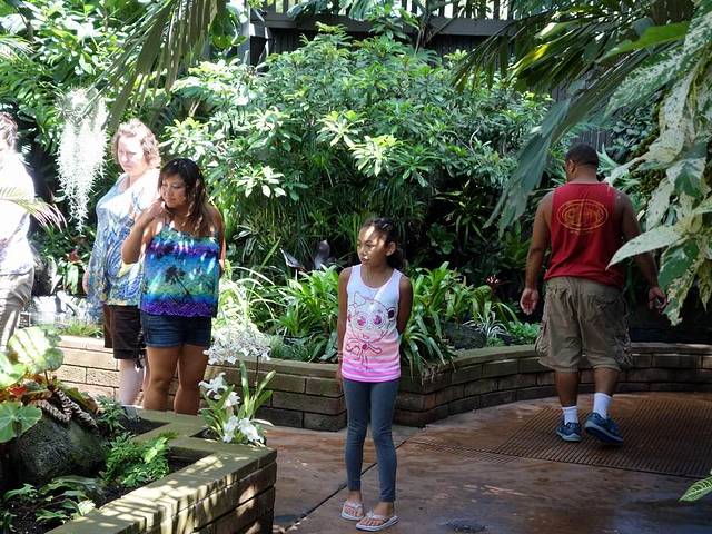 热带植物温室里的空气清新,温度适宜,很多人在这里休息。