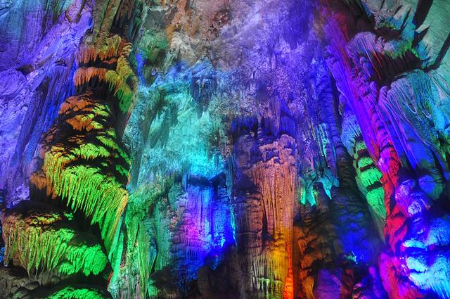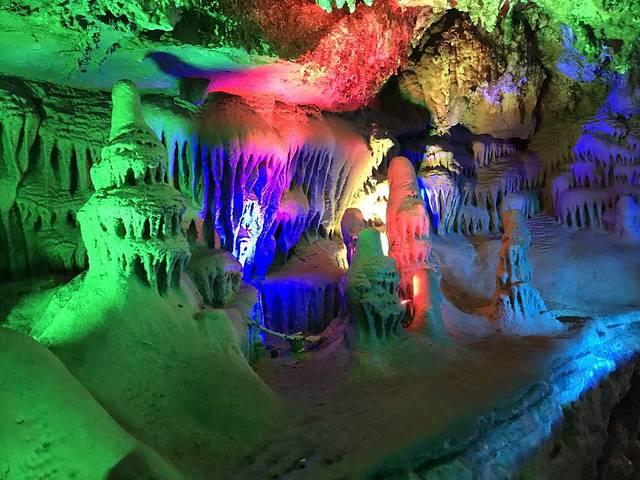 下山路好走很多,随着温度逐渐升高,感觉每一个毛孔都在冒汗。走到溶洞口,立马感觉凉风习习,溶洞里温度要低很多,夏天肯定是个避暑胜地。溶洞内部特别壮观,犹如置身神秘莫测的梦幻世界,真的是浑然天成、鬼斧神工。