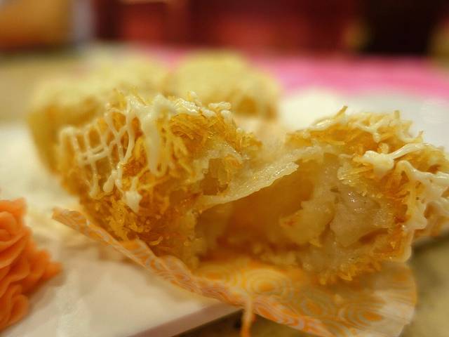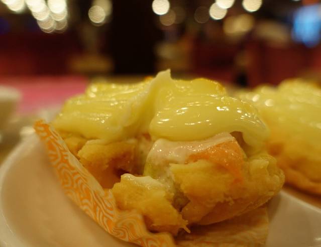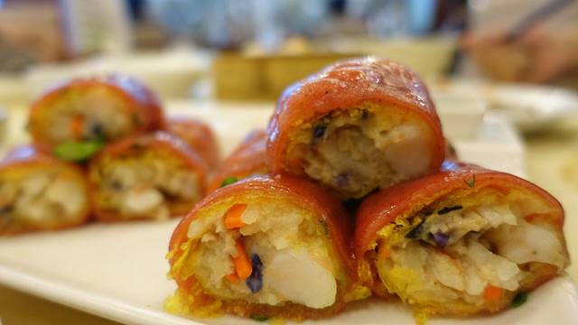 因为住在越秀区,所以去的大众点评评论最多的聚福楼,点评1万7千条!当天没吃到金沙红米肠,可谓大大的遗憾,但也有强推!芥末三文鱼塔!好吃到爆炸,怕腻的小伙伴们不用担心,我吃的时候将蛋黄酱刮掉,口感并未受到影响(这么多蛋黄酱!减肥大忌啊!只有舍弃)。艇仔粥和四色虾饺也是强推之一!写着写着又饿了