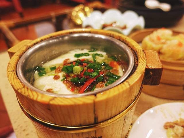 此店在广州宾馆3楼,酒店住户还有优惠。每天都有特价点心,我们周一赶上虾饺半价。缺点是服务员真的很冷漠啊,虾饺半价也是拼桌的本地人告诉我们的。强推鱼翅饺(一小盅和凤爪炖的那个),入口清爽很有层次,但并吃不出鱼翅就是了。流沙包也是强推之一,最后撑的不行,我还硬塞了一个进肚!今天也吃到了金沙红米肠,也算是弥补了点都德的遗憾了