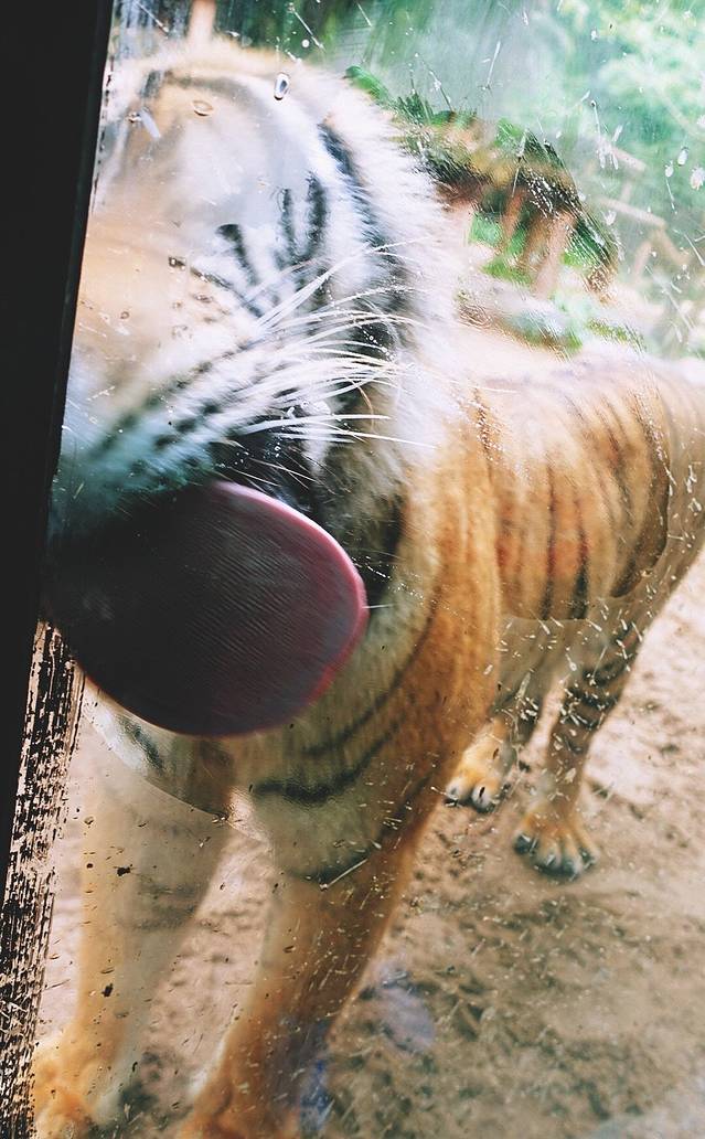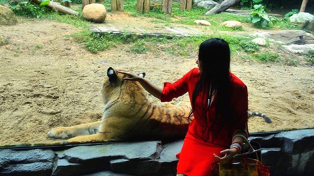 看完表演左走进入百虎园,有很多超级大的孟加拉虎!真的好大!而且十几只啊,虎园上方也时不时有吊着的肉条,勾引大喵们跳一跳