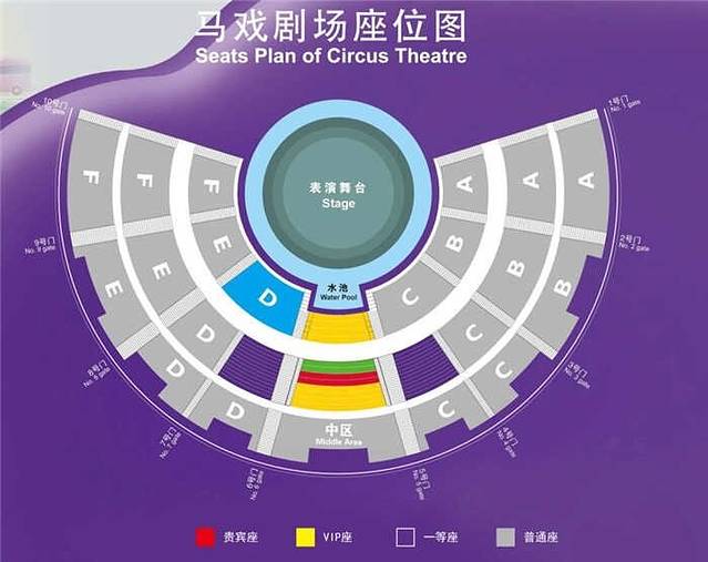 大马戏入口17点就开门了,园内有商店和一些电动玩具,不过早来的小伙伴还是先去占座,因为作为是先到先得,我们5点半左右到达,坐在了C区最前面那块!效果还是很震撼的。一等座加费50元(很值很推荐),VIP加费200元。加费要在入园前购买,园内是不卖的,加钱的座位就是对号入座了。对着水池的前几排座位要小心,有很多跳水节目会有很大的水花,需要穿雨衣啊