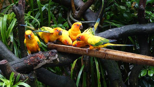 猿类一个馆接着一个馆大概能看到十几种,之后就是鸟类乐园,下面这两个小家伙是情侣,喂食的时候公宝宝会把到嘴的食物喂给女票,然后再自己吃,饲养员一共喂了三次,两次都喂给女票了!真是模范男票啊!饲养员说这种鸟一生只有一个伴侣,而且必须找到自己喜欢的,如果找不到就孤独终老,园里还有一只已经上年纪了,还木有找到对象鸟类原来也有单身汪,那不是天天看小情侣撒狗粮,不对,是鸟粮