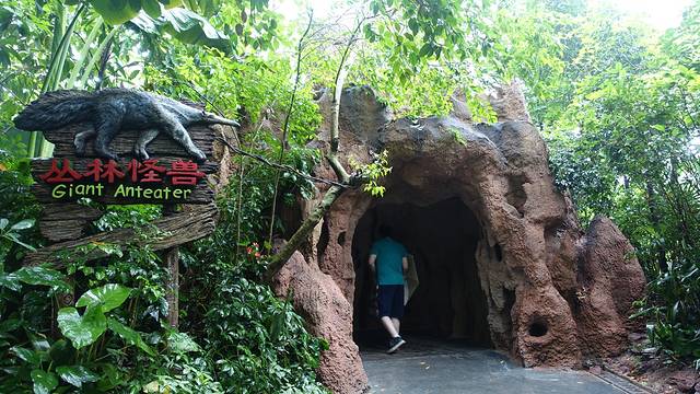最后进入一个霸王龙的山洞就到下一个景点啦!在侏罗纪森林里,如果害怕这些恐龙会有紧急通道,可以直接绕道下个景点,很贴心啊!