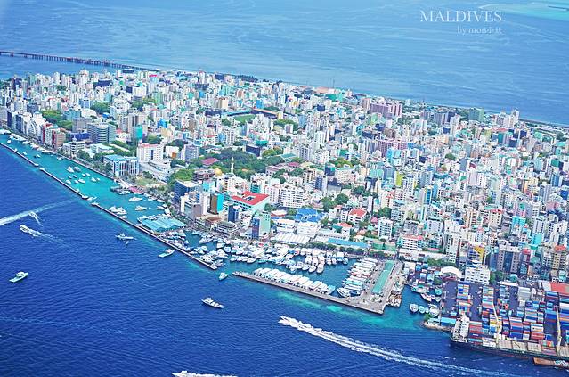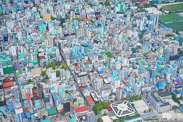 飞机路过马累市区,这个世界上最小的首都,没想到是这么小清新的城市,五颜六色像积木搭的。