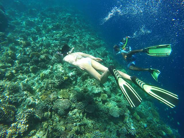 2、浮潜:岛周围浮潜环境一般,每天有免费的出海浮潜,但是需要通过一个游泳测试。因为同伴不会游泳,我们第一天就参加了一个90美金两小时的浮潜,有教练教你浮潜。之后就可以不用测试,参加免费浮潜项目了。