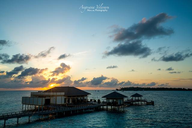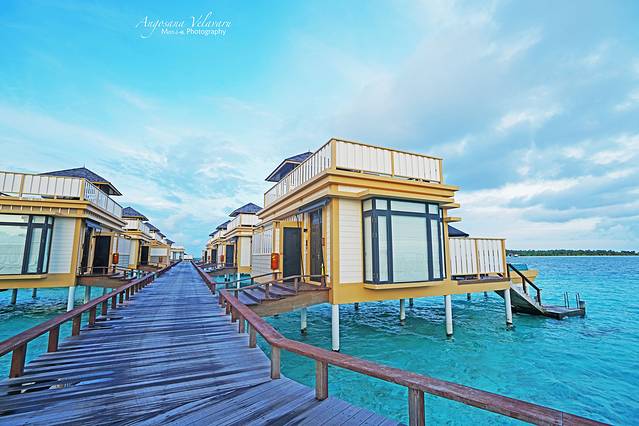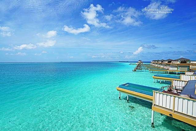 马尔代夫分雨季(5月-10月)和旱季(11月-4月),我第一次来是五月,下了两天雨,不下雨也是多云,海边要是没有艳阳,景色会大打折扣的。这次虽然也是雨季,运气不错,只有半天下雨。朋友们不要再问我几月份来会不会下雨,那得问老天爷。