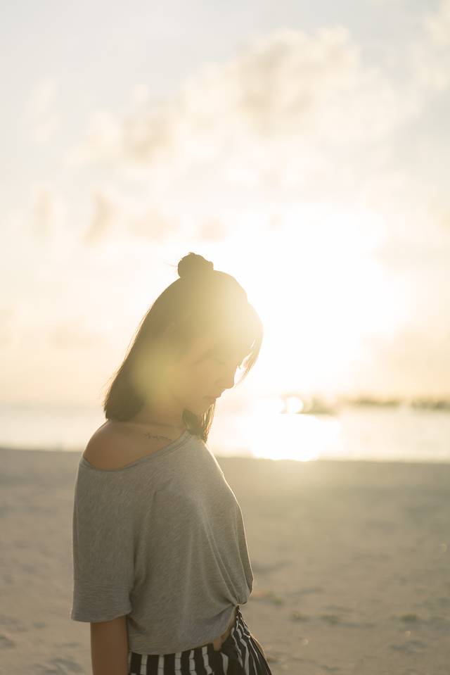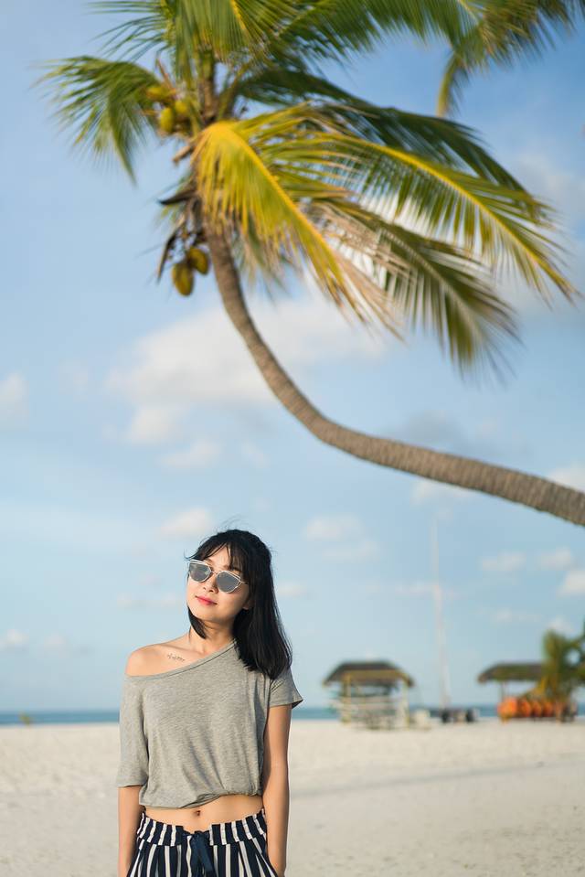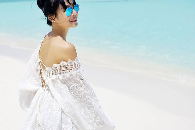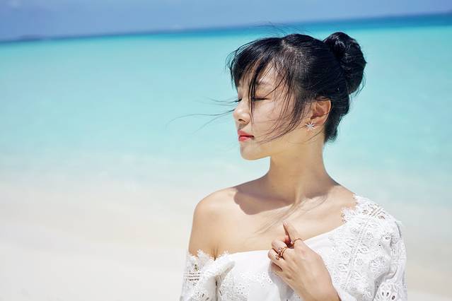 正午烈日当空,此时的海水是最美最清透的。不过顶光不适合拍人像,尤其是刘海妹子,大家拍摄时尽量把头抬起来一些。抓紧时间凹两个造型